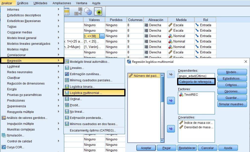 En este caso se trata de detectar la influencia de los predictores continuos o dicotómicos en la probabilidad de ocurrencia de la variable de respuesta de más de 2 categorías.
